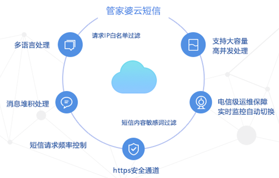 管家婆云短信,是管家婆云為管家婆軟件用戶提供的一種通訊服務(wù)的能力,支持短信驗證碼、短信通知等多種內(nèi)容推送,三網(wǎng)合一的專屬通道,達到率高達99%。